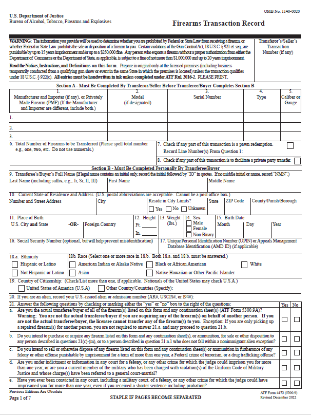 *Transfers upon standard FBI background checks and Firearms Transaction Record #4473 completion.
